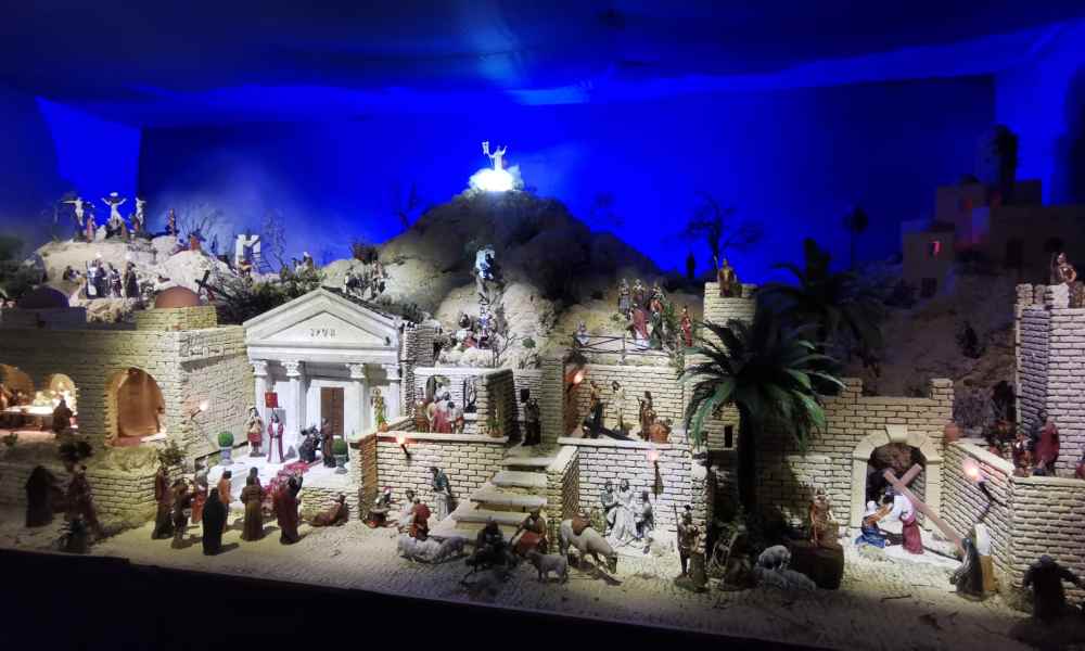 Dentro la cappella del SS. Crocifisso a Paternò, tre ambienti allestiti coi temi pasquali. Uno spazio di arte e preghiera.