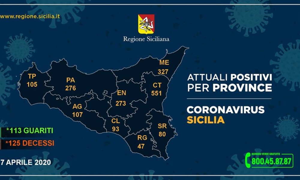A Catania si registrano 551 casi positivi, 11 in più rispetto a 24 ore prima: di questi 155 in terapia intensiva, 28 guariti e 51 i decessi