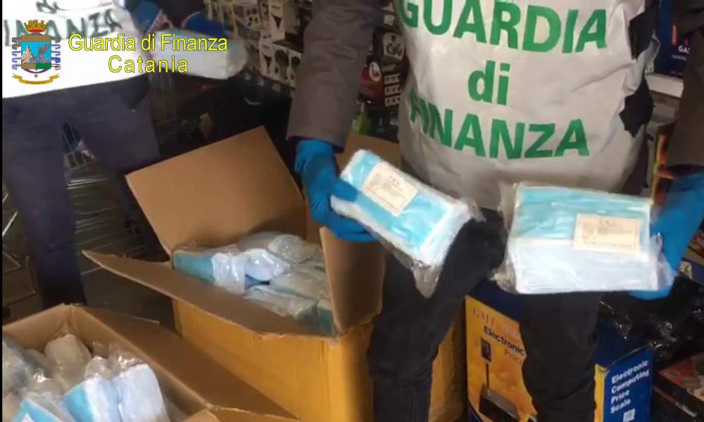 I militari del Comando provinciale della Guardia di Finanza di Catania, nell’ambito dei servizi effettuati per il contenimento dell’epidemia da Coronavirus, hanno sequestrato a Misterbianco, 10.000 mascherine di protezione individuale (D.P.I.) non sicure, trovate all’interno di un esercizio commerciale, gestito da un cittadino cinese.