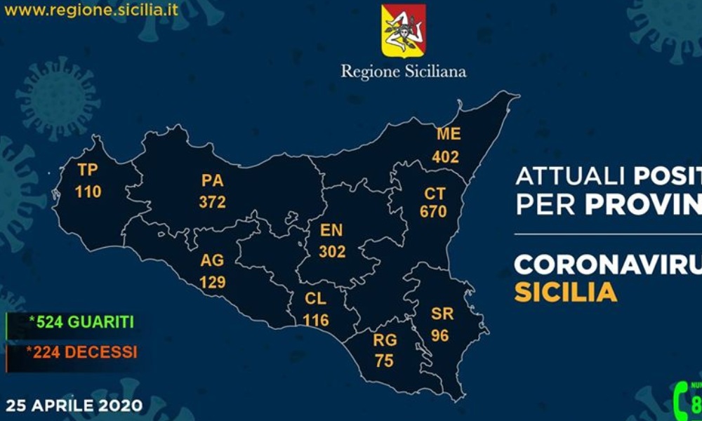 In Sicilia si registra, nelle ultime 24 ore, un boom di guariti e per la prima volta scende il numero totale dei malati da coronavirus. Questo il quadro riepilogativo della situazione nell’Isola, aggiornato alle ore 17 di oggi. Attualmente sono ancora contagiate 2.274 (-46), 524 (+81) sono guarite e 224 decedute (+6). Degli attuali 2.274 positivi, 485 pazienti (-8) sono ricoverati – di cui 33 in terapia intensiva (+1) – mentre 1.787 (-40) sono in isolamento domiciliare. A Catania, nonostante resta la provincia siciliana con il più alto numero di contagi, calano i casi positivi; allo stato attuale ci sono 670 persone infette, meno 51 rispetto a ieri. Sono 107 i ricoverati ,più 14 rispetto a 24 ore addietro, mentre sale il numero dei soggetti guariti dai 128 di ieri si passa ai 195 di oggi. Nelle ultime ore si registra un solo decesso: sono 78 le persone decedute.