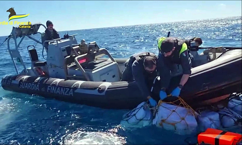 Trovati in acqua circa 70 colli galleggianti al largo della costa orientale della Sicilia, valore della droga superiore a oltre 400 milioni di euro.