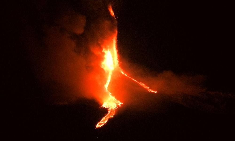 L'Ingv di Catania ha osservato che l'attività stromboliana ha prodotto la ricaduta di materiale magmatico lungo il pendio del cono